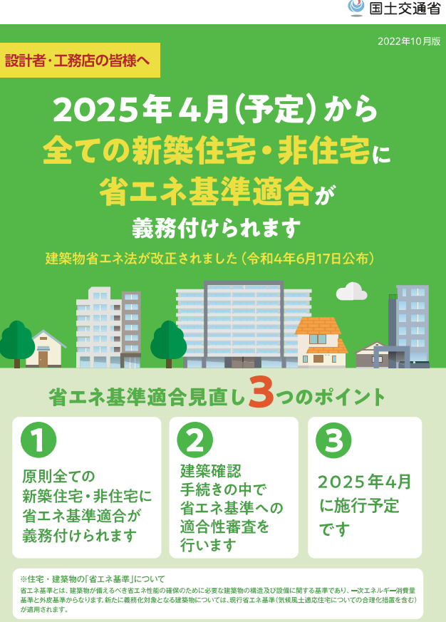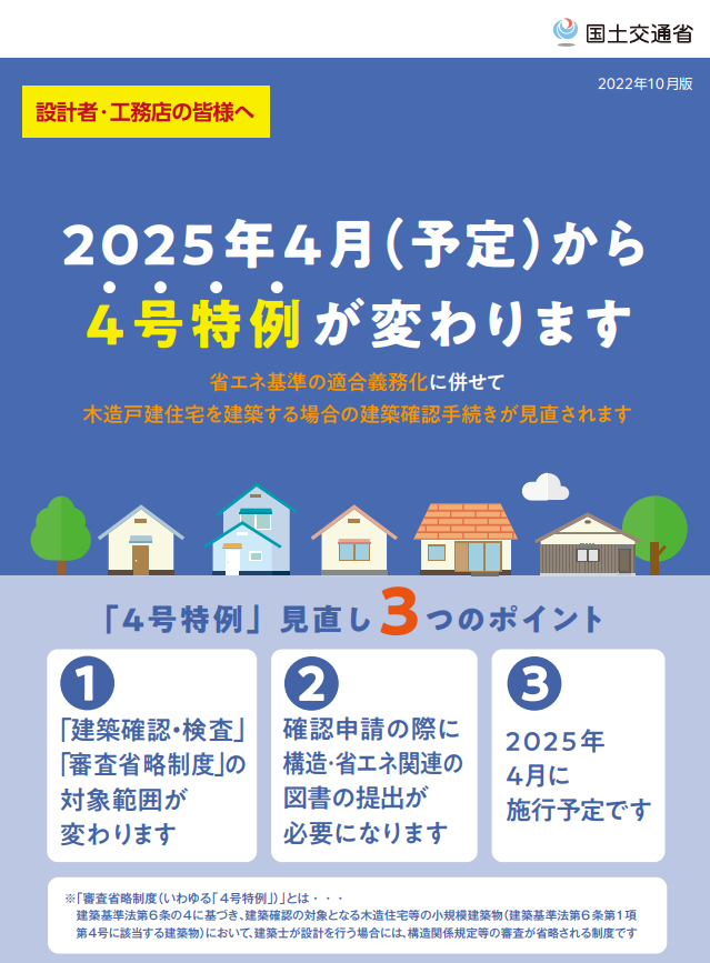 025年4月の省エネ基準適合義務化にあわせて、木造戸建住宅を建築する場合の建築確認手続きが同時に見直され、確認申請の際に、構造・省エネ関連の図書の提出が必要になり、4号特例も2025年4月に(施行予定)変わることになりました。