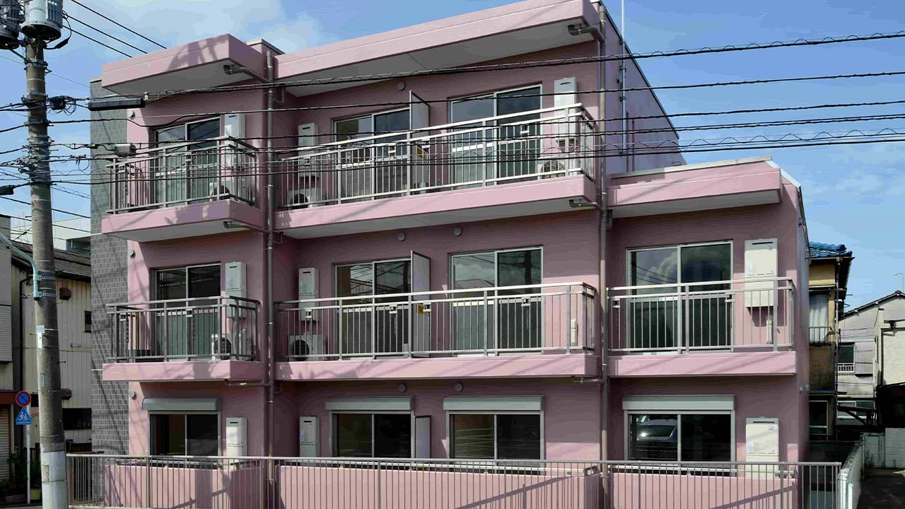 外壁色をオーナーの強い要望でピンクになったのは以外な一面の共同住宅